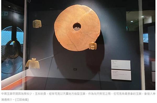 中國玉器早期因為預料少,玉料珍貴,經常可見以天圓地方造型玉器,作為向天祭祀之用,也可見鳥禽意象的玉器,象徵人神溝通媒介。(江昭倫攝)