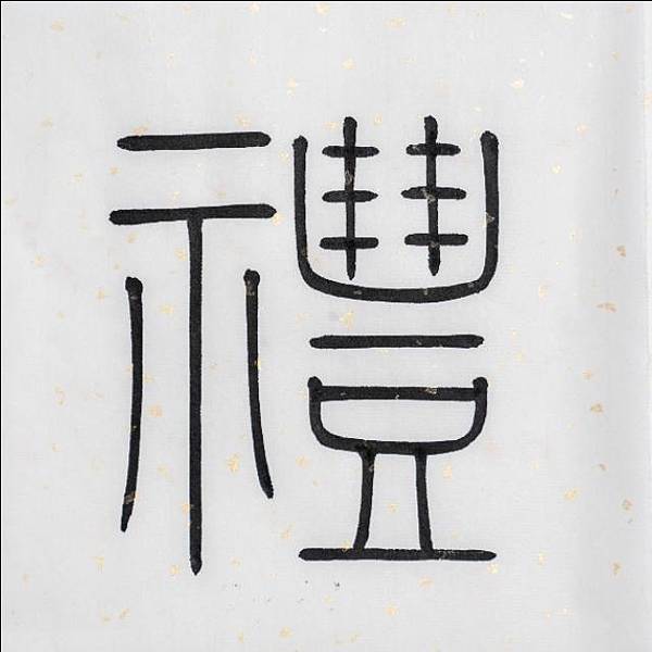 甲骨文中沒有「禮」這樣的字形,類似「神」字,「禮」字左部也有「礻(示)」。《說文解字》:「禮,履也。所以事神致福也。從示,從豊,豊亦聲。」意思是說,「禮」為「履行,是用來祭神求福的事。」還告訴大家,「禮」字右部「豊」不但表義亦表聲。