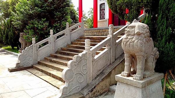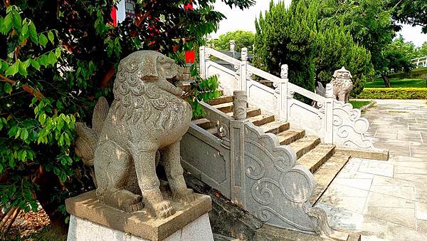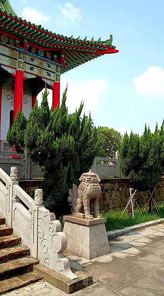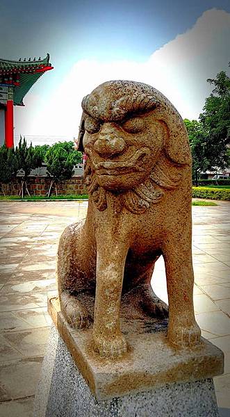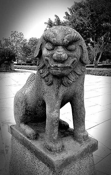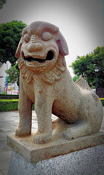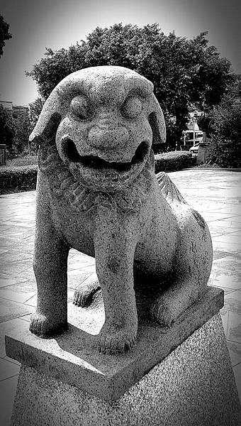 *此兩組狛犬應為日治時期阿猴神社之物,神社位址在今屏東市中山公園內(舊稱「屏東公園」),戰後神社被拆除,兩組狛犬被移至現處-萬年溪旁的忠烈祠新址。