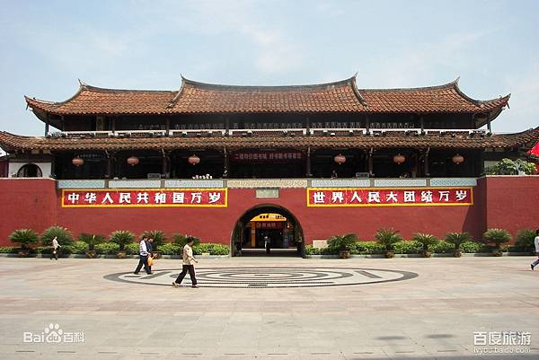 據史料記載,在我國明成化年間,知府何源築層台,修兩扇門,立譙樓於臺上,下有基座,基座上建一重檐雙層磚木結構房屋。 基座南北長40米,東西寬16米,高6.4米。 樓高9.6米,東西向,為2層重檐硬山式木結構。 面闊5間,進深3間。 明末被毀。 清雍正五年(1727年)於舊址複建,后經多次修繕。