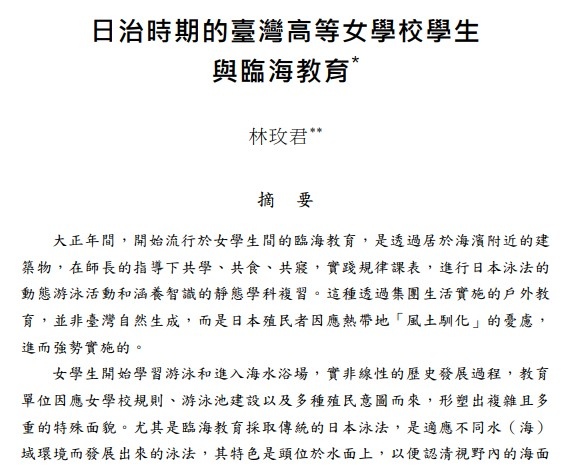 日治時期的臺灣高等女學校學生與臨海教育- 月旦知識庫 https://bit.ly/3b6L0fU