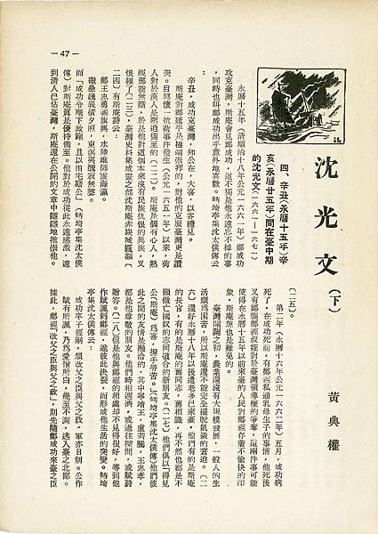 沈光文(下) 黃典權 四、辛丑(永曆十五年)辛亥(永曆廿五年)間在臺中期的沈光文 (一六六一-一六七一) 永曆十五年(清順治十八年公元一六六一年)鄭成功攻克臺灣,斯庵會見鄭成功,這不獨是他永遠忘不掉的事,同時也叫鄭成功出乎意外地喜歡。鮚埼亭集沈太僕傳云: 辛丑,成功克臺灣,知公在,大喜,以客禮見。 斯庵對鄭延平是極端崇拜的,對他的克服臺灣更是讚美。自郭懷一抗荷事件發生(公元一六五一年)以來,荷人對於漢人是壓迫備至的[二二]。斯庵是個有心人,熟視那能無睹,於是他對這個本來沒有民族仇恨的異族,又恨極了[二三],臺灣史料集成書之部沈斯庵赤崁城匾額[二四]有斯庵詩云: 鄭王忠勇義旗興,水陸雄師震海瀛。 礮疊巍峨僙夕照,東照夷醜寂無聲。 而「成功令麾下致餼,且以田宅瞻公」(鮚埼亭集沈太僕傳)對斯庵真是優侍備至。他對於成功從此永遠感激,遠到清人已佔臺灣,斯庵還在公開的文章中隱隱地推崇他。[二五]。 第二年(永曆十六年公元一六六二年)五月,成功病死了,在成功死前,有鄭經私通孔母生子的事情,他死後又有鄭襲鄭經叔姪對於臺灣領導權的爭奪,這兩件事可能使得在永曆十五年以前來臺的人民對鄭經存著不愉快的印象,斯庵想也是難免的。 臺灣開闢之初,農業還沒有大規模發展,一般人的生活頗為困苦,所以斯庵還不能完全擺脫飢餓的窘迫。[二六]還好永曆十八年以後遺老多己來臺,他們有的是斯庵的長官,有的是斯庵的舊同志,舊相識,再不然也都是不願做亡國奴的志同道合的新朋友。[二七]他們俱以「得見公(斯庵)為喜,握手勞苦。」(鮚埼亭集沈太僕傳)他們彼此之間的友情是融洽的,其中寧靖王,盧若騰,王忠孝,都是他尊敬的朋友。他們時相週濟,或過往探問,或賦詩贈答。[二八]但是他與鄭經的相處卻不見得很好,等到他作賦諷刺鄭經,遂彼此決裂,而形成他生活的突變。鮚埼亭集沈太僕傳云: 成功卒子經嗣,頗改父之臣與父之政,軍亦日削。公作賦有所諷,乃為愛憎所白,幾至不測,逃入臺之北鄙。 據此,鄭經「改父之臣與父之政」,則先隨鄭成功來臺之臣中,有不少人後來或許跟擁護鄭襲有關,而被鄭經斥逐。沈斯庵可能就以同樣的原因被疏遠,而對鄭經不滿。觀斯庵於平臺灣序中對鄭經的詆毀,[二九]可知其交惡之深。其作賦係在永曆二十五年(公元一六七一年)前後。鮚埼亭集太僕傳載斯庵逃入北鄙時的一段剃頭做和尚的歎語云: (斯庵)嘆曰:吾廿載飄零絕島。棄墳墓不顧者,不過欲完髮以見先皇帝於地下,而卒不克! 自永曆五年算起,廿載飄零絕島,正好是永曆廿五年,假如他說的是約數則當在永曆廿五年左右,至於他的那篇賦,史誌不載已無從稽攷了。從此斯庵遂成山間的逐客了。 五、辛亥(永曆廿五年)戊辰(康熙廿七年)在臺末期的沈光文 (一六七一-一六八八) 斯庵作賦譏刺鄭經,差點兒就有生命的危險,幸而他剃頭變服做和尚逃往北鄙,在「羅漢門山中結茅以居」。(鮚埼亭集沈太僕傳)羅漢門,[三○]大概在古東寧府東六十里一帶的地方。讀他的感懷和山居的詩,彷佛他的住處是在山間而近海的地方。如感懷七首之一的「退避依麋侶、流離傍蜃宮;」山居八首之一的「松杉生遠影,風雨隔前灣;」山居之六的「山靜能容客,潮流直到家;」山居之八「月色來窓曙,山光到海青」等,都可作佐證。但這山間近海的地方,究是何山?感懷七首之末最後兩句是「敞盧依大武,遙接數峯青」。「大武山」臺灣詩會第三號連雅堂氏加上的註解說,「大武山,即大武巒山,在嘉義之東二十里。」其根據為何,尚未得旁證。而考續修臺灣府誌卷一山川:「大武巒山在(諸羅)縣治東南,人跡罕到,為邑主山。」索之府誌諸羅縣圖、則諸山重疊,大武巒屏列極東,距海殊遠。是「山光到海,潮流到家」均非可能。那裡既是人跡罕到,想斯庵遁逃該不至落荒若是。我們又按圖細尋,諸羅縣圖上除了大武巒山外,以大武名者只有大武隴山了,它的西面是加拔溪和接著海的平原。諸羅縣誌卷一形勝引臺灣誌略云:「大武隴深入邃海。」這不是可作近海的明證嗎?所以我們認為沈斯庵茅盧所依的「大武」是在諸羅「縣治東南六十里」(府誌卷一山川)的大武隴山。我們再細看府誌的臺灣府總圖,便知道大武隴與羅漢門山僅有一山之隔,斯庵由羅漢門去那裡是極容易的,而與目加溜灣也相距不遠。 斯庵是個書生,在山間的生活免不了教書和行醫的書生本色。鮚埼亭集沈太僕傳云: (羅漢門)山旁有目加溜灣者,[三一]番社也,公於其間教授生徒,不足則濟以醫。 斯庵在目加溜灣行醫教授生徒,是很值得注意的一件事,他能教授番徒,行醫接觸番人,一定是懂得番語的,而「教授番徒」這件事更是臺灣地方教育史上別開生面的重要事情,所以連雅堂氏在臺灣通史的教育志曾特別提起。不過這種和番人共處的生活總是困苦無味的,他的感懷自然很多,一直叫憂忡與逸興在心裡矛盾著,他以孤芳自賞的情懷恨惡著一切不滿的現實,物質生活的困窮,叫他只好向煙霞,月色,山光,海韻去尋求靜致,以勉安寂寞的心境,現錄其感懷詩及山居八首於後以見他當時的情懷。感懷: 一、往事平生恨,株牽且俟河;觸藩誰遣觸?磨蝎命先磨!海嶼薇原小,天南雁不過。支扉當夜靜,霜月影婆娑。(這首是他回憶鄭經對他的誅求,那是多麼緊急啊) 二、未伸靖節志,居此積憂忡:退避依麋侶,流離傍蜃宮。身閒因性懶,我拙任人工。島上風