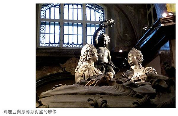 在現今維也納霍夫堡宮(Hofburg)旁的約瑟夫廣場(Josefsplatz),有一間始建於14世紀的古老天主教教堂,名叫聖奧古斯丁教堂(Augustinerkirche)。哈布斯堡家族代代成員都曾在這裡受洗和舉行婚禮。瑪麗亞也不例外,1736年,18歲的她在這裡舉行了婚禮,與法蘭茲共偕連理,結成一對至死不渝的夫妻,而她的傳奇就在這刻開始。