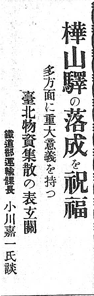 ▲1937年(昭和十二年)樺山驛落成時的新聞報導(出處:臺灣日日新報)