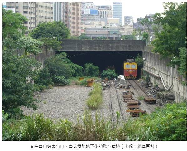 ▲舊華山站東出口,臺北鐵路地下化的殘存遺跡(出處:維基百科)
