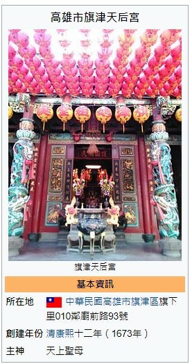 A.旗津天后宮網站,《由來典故》網頁。網址:http://www.chijinmazu.org.tw/html/aboutus_2.asp。