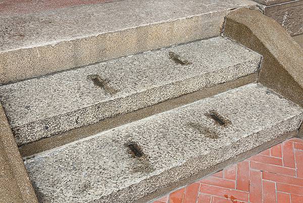 從廟埕踏入三川門的三級花崗石台階,是由康熙十二年
