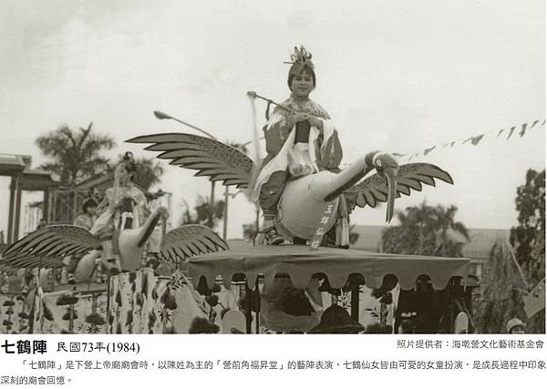 下營莊營前角七鶴陣:為下營三月扛大轎時,所出動的角頭藝閣。