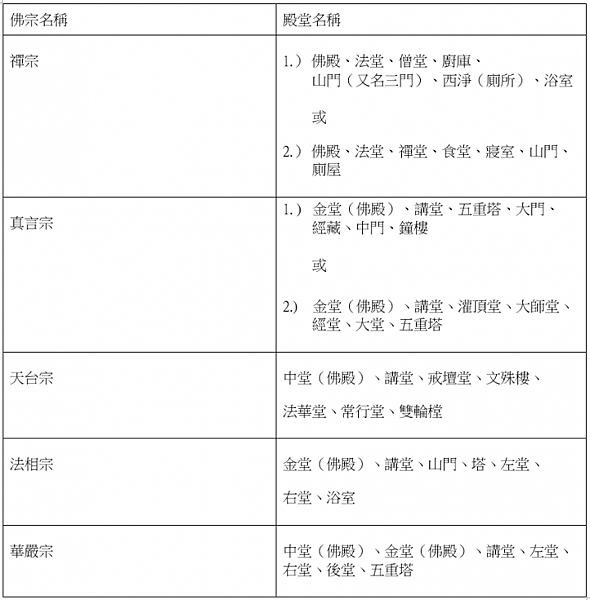 有關日本的七堂伽藍,依下列二書所載,其各堂名稱如下︰