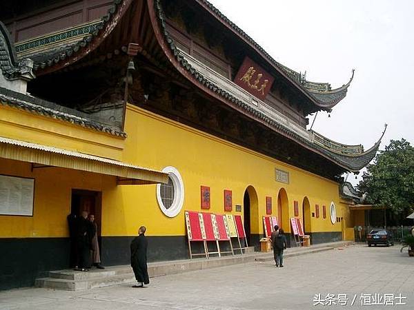如浙江寧波的保國寺,其中軸線上依次排列天王殿、大雄寶殿、觀音堂、藏經樓,兩側為僧房。客堂和鐘鼓摟等。現存最好的實例就是北京西山的十方普覺寺,雖未完全保存伽藍七唐制,但可藉此略窺一斑。