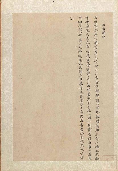 此冊《苗蠻圖說》繪有五十四幅淸代苗族及其他少數民族圖,並有解說。書前有光緖辛卯錫少鶴題識,謂此圖為其於是年所制。 (哈佛大學圖書館藏)