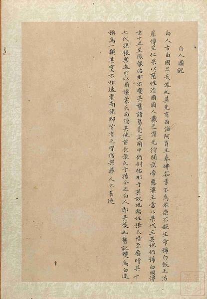 此為清代雲貴總督伯麟奉聖諭繪製的上奏嘉慶皇帝的圖說奏章(即聞名於世的《伯麟圖說》),成書時間約在嘉慶二十三年(1818年)。其中《滇省夷人圖說》收圖108幅,彩繪,附有伯麟撰寫的長達1848字跋文。(哈佛大學圖書館藏)