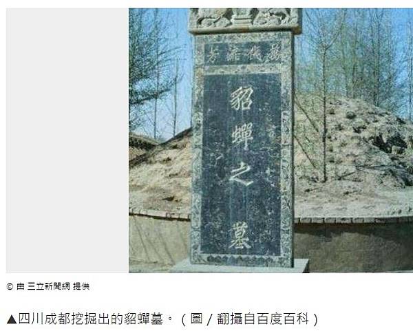 成都鐵路局無意間挖到一座陵墓,後來經證實是貂蟬墓。當時墓中挖出兩大塊石碑,一個隸書一個篆書,從碑文內容,專家認定這就是貂蟬之墓。