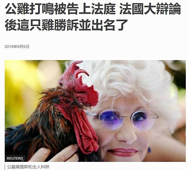 公雞打鳴被告上法庭 法國大辯論後這只雞勝訴並出名了