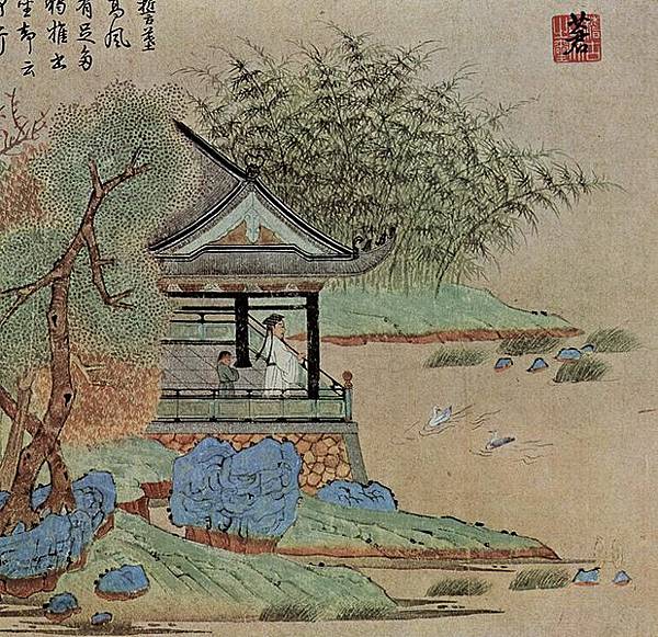 書法家和鵝愛好者王羲之觀鵝,錢選著,1250-1300年