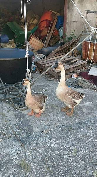 七星潭安檢所前一戶人家豢養的兩隻鵝,儼然成為濱海漁村街頭巷弄鮮明的活動景致。