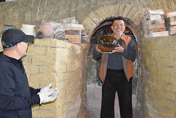 大蛇窯點火、拜窯公的儀式,是在去年聖誕節傍晚開始,窯火整整燒了3天2夜,窯火在第24小時就來到了預計的1250度高溫,最終最高溫達到1290度,全天候地由專人輪流看管添柴,再經過近一個星期的降溫後,2日上午正式開窯。