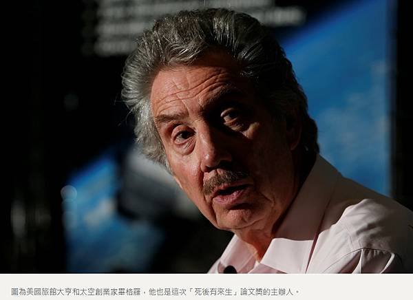 圖為美國旅館大亨和太空創業家畢格羅,他也是這次「死後有來生」論文獎的主辦人。