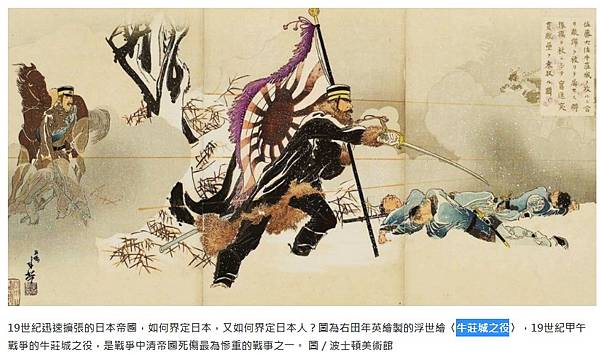 19世紀迅速擴張的日本帝國,如何界定日本,又如何界定日本人?圖為右田年英繪製的浮世繪〈牛莊城之役〉,19世紀甲午戰爭的牛莊城之役,是戰爭中清帝國死傷最為慘重的戰事之一。 圖/波士頓美術館