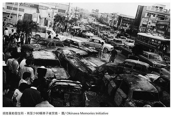 胡差暴動發生時,有至少80輛車子被焚燒。 圖/ Okinawa Memories...