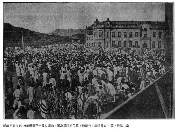 朝鮮半島在1919年爆發三一獨立運動,圖為當時的民眾上街遊行,高呼獨立。...
