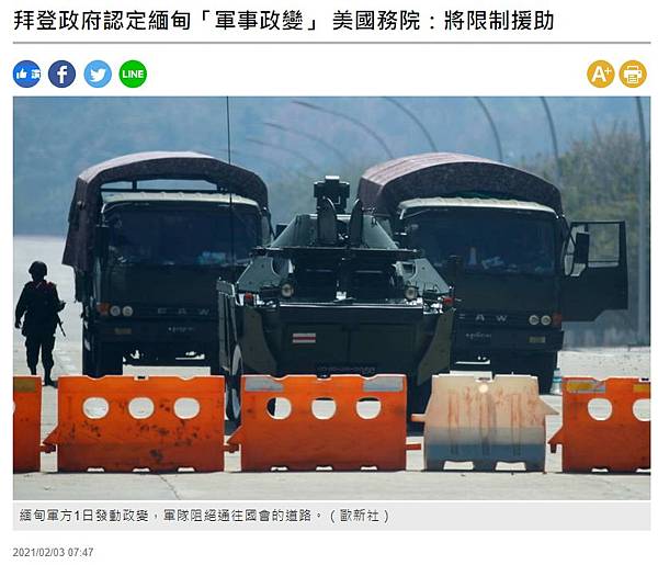 拜登政府認定緬甸「軍事政變」 美國務院:將限制援助 - 國際 - 自由時報電子報 https://bit.ly/39FUqOk