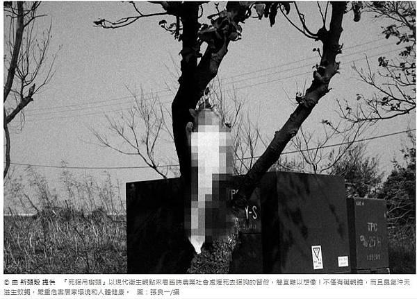 『死貓吊樹頭』以現代衛生觀點來看舊時農業社會處理死去貓狗的習俗,簡直難以想像!不僅有礙觀瞻,而且臭氣沖天滋生蚊蠅,嚴重危害居家環境和人體健康。 圖:張良一/攝© 由 新頭殼 提供 『死貓吊樹頭』以現代衛生觀點來看舊時農業社會處理死去貓狗的習俗,簡直難以想像!不僅有礙觀瞻,而且臭氣沖天滋生蚊蠅,嚴重危害居家環境和人體健康。 圖:張良一/攝