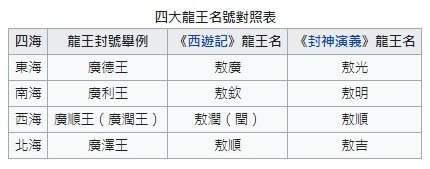 四海 龍王封號舉例 《西遊記》龍王名 《封神演義》龍王名