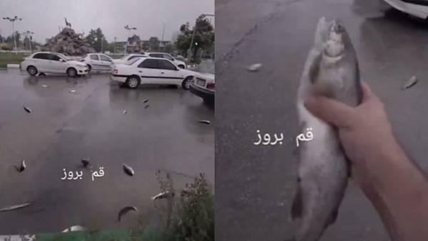 伊朗西南部城市亞蘇季(Yasuj)出現「天降魚雨」奇景,一大批活魚從天而降,影片在社群媒體瘋傳。有人打趣表示:「看來以色列沒有發射飛彈,而是送來了魚。」
