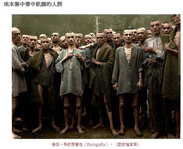 「為了這個紀念日,我特意選了一些歷史照片上色,它們都是1945年初拍攝的,彼時人們已經知道納粹屠殺的恐怖了。」