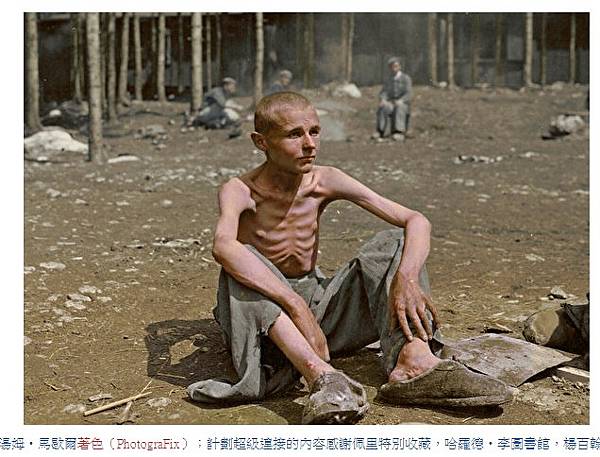 「照片的編輯和著色過程也與平時不同,因為當時那些人被解救出來時,已經奄奄一息了,所以他們皮膚的色調和正常人完全不同」,他解釋道,「上色後,你能看清他們瘦骨嶙峋,皮膚蒼白得一點血色也沒有。即使年輕人也是頭髮灰白和黑眼圈,看起來很蒼老。」