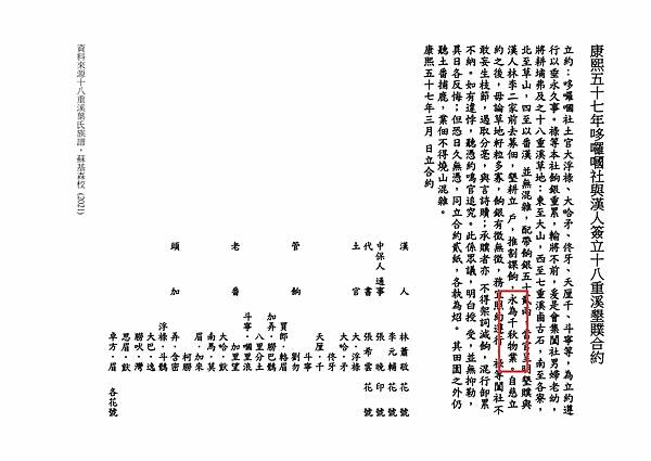 合約內容有句「永為千秋物業」,這六個字讓哆囉嘓社永遠失去十八重溪這片領土!清朝入台後仍然延用荷蘭在台灣創設的贌社制度,依照周鍾瑄在諸羅縣志所說,本契約中所列六位「頭家」看似為本社社民,應是當時該社之贌商,或許這些哆囉嘓人也已經學會經商的本事了。番社向來以山產鹿脯抵充稅徵,贌商扮演居中採買轉售已繳付翻社稅款的腳色,精於盤剝謀取暴利,各社社番久經榨取大多貧苦不堪。