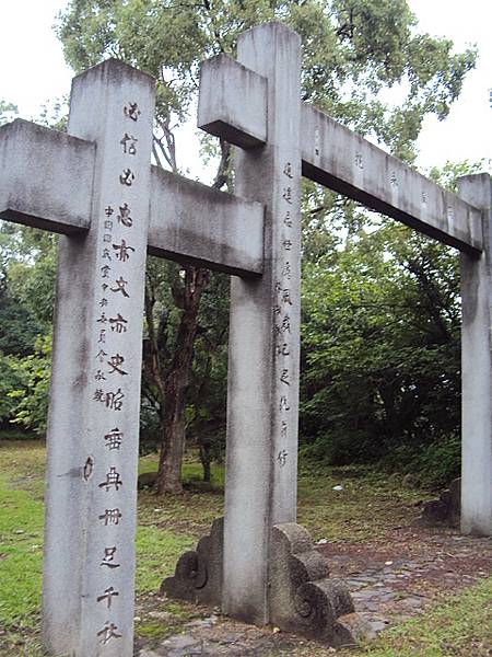 獅頭山於勸化堂--台灣十二勝景之一/苗栗獅頭山的山門是為紀念皇紀兩千六百年而建,獅頭山在日本時代是屬於日本曹洞宗(此碑背面刻有「皇紀兩千六百年」) @ 姜朝鳳宗族 :: 痞客邦 ::