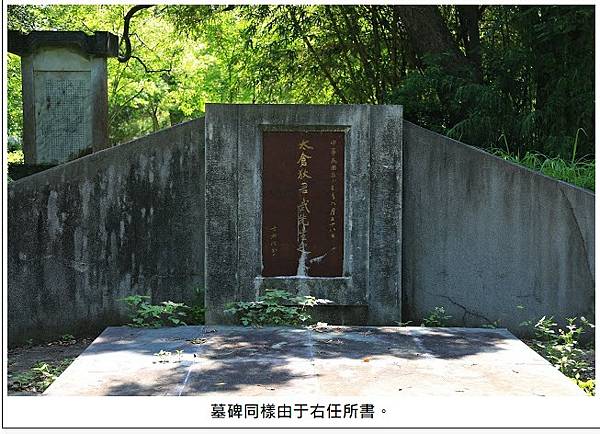 墓道上立有牌坊, 墓碑則是由于右任所書 ,