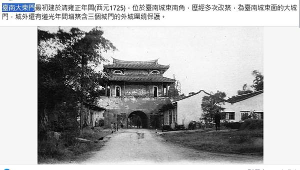 臺南大東門最初建於清雍正年間(西元1725),位於臺南城東南角,歷經多次改築,為臺南城東面的大城門,城外還有道光年間增築含三個城門的外城圍繞保護。