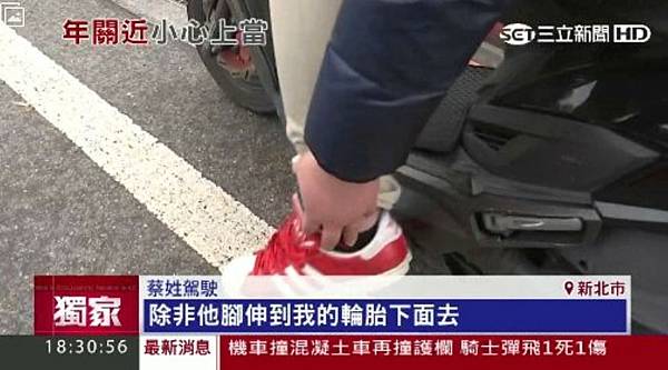 假車禍詐財新招!騎士「貼身」控車輪輾腳│三立新聞台 ID-442654