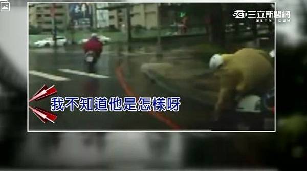 蔡姓駕駛:「他是在我一啟動的時候,然後他是用手拍我的車子,後來看行車紀錄器我發現,我根本就沒有撞到他,因為不可能,除非他腳伸到我的輪胎下面去,可是,合理的狀況是,你任何一個騎摩托車的人,不可能腳會伸到人家輪胎下面去。」