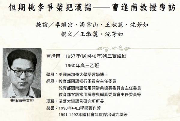 曹逢甫教授係台灣彰化縣人,生於1942年元月五日 (twlls.org.tw)