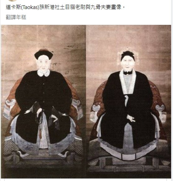 道卡斯(Taokas)族新港社土目貓老尉與九骨夫妻畫像