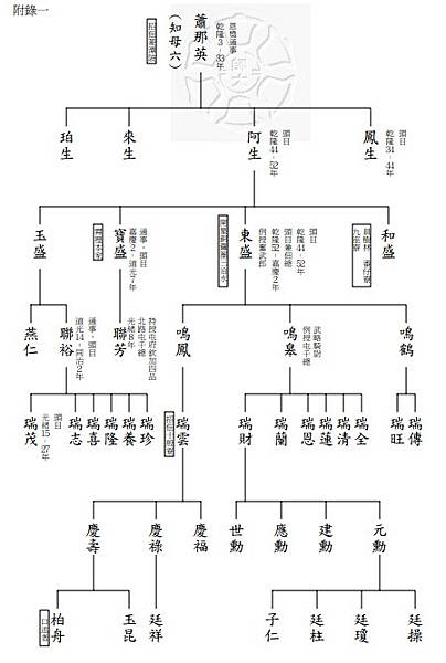引用:張素玢---龍潭十股寮蕭家—一個霄里社家族的研究。