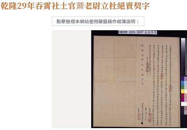 乾隆29年吞霄社土官蔴老尉立杜絕賣契字 - 藏品資料 - 國立臺灣歷史博物館典藏網 https://bit.ly/3gTQvBs