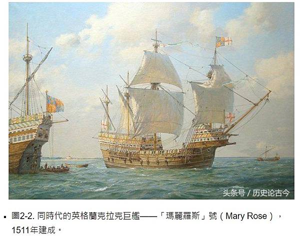 圖2-2. 同時代的英格蘭克拉克巨艦——「瑪麗羅斯」號(Mary Rose),1511年建成。