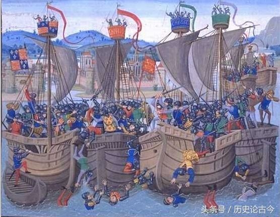 圖1-6. 英法百年戰爭中的海戰,此時部分大船之尺度已可與小號「寶船」匹敵。