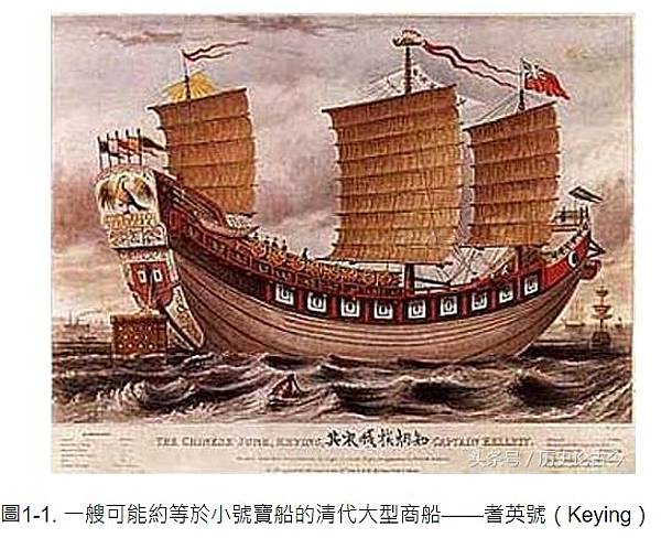 圖1-1. 一艘可能約等於小號寶船的清代大型商船——耆英號(Keying)。