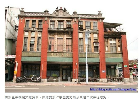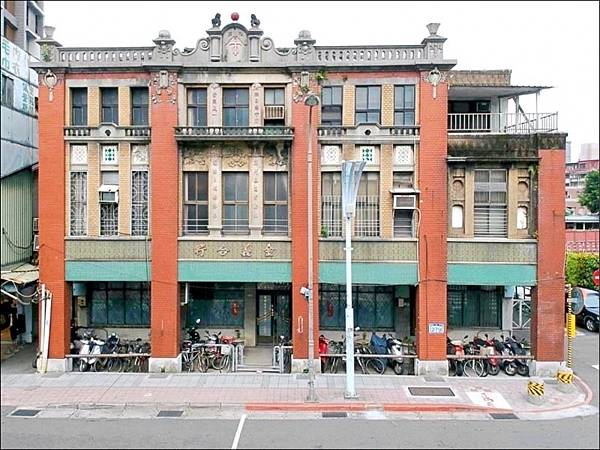 建於1927年的「金義合行」三開間洋式樓房立面磚砌。(記者楊心慧翻攝)