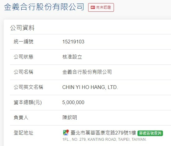 1958年2月15日,陳欽明任董事長的「金義合行股份有限公司」經北市府核准設立於此地,資本額為新台幣500萬元。