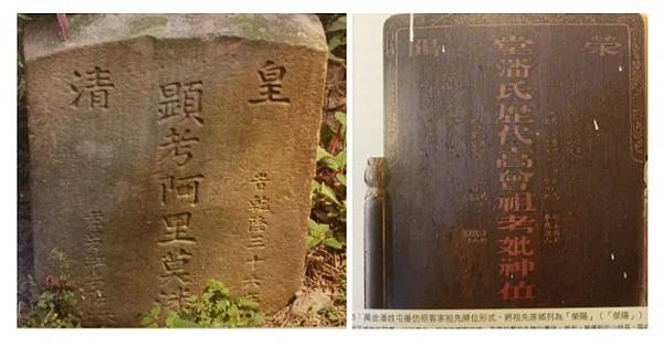 乾隆36年,力力(力里)社人的墓碑已有「皇清」(圖一),但仍為原住民名號。其後,已改漢姓的潘姓平埔族人,就仿漢人在墓碑刻上「滎陽」潘氏之堂號,但卻錯寫成「榮陽」(圖二)。