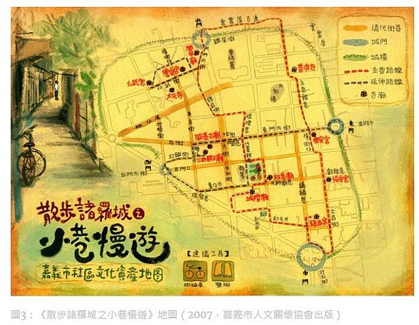 圖3:《散步諸羅城之小巷慢遊》地圖(2007,嘉義市人文關懷協會出版)