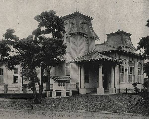 左側可見兩層樓尖頂建築為「民政長官官邸」