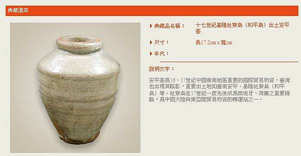 參考陳信雄著臺灣陶瓷81至83頁安平壺為鄭成功火藥罐的說法,有太多誤導!年代 人物 用途不